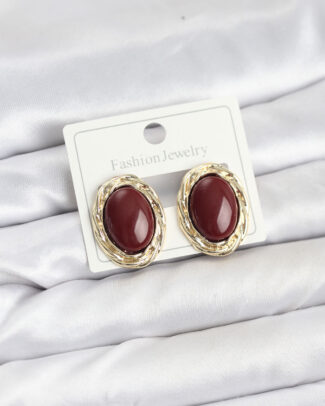 Pirinç Gold Renk Bordo Model Vintage Kadın Küpe