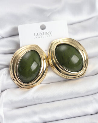 Pirinç Yeşil Badem Model Vintage Gold Kadın Küpe