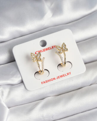Pirinç Gold Renk Zirkon Taşlı Kelebek Model Kadın Küpe