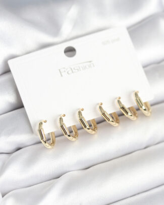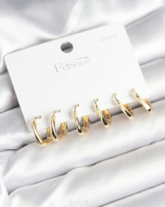 Gold Renk Pirinç Halka Model 925 Ayar Gümüş Çivili Kadın Küpe Seti
