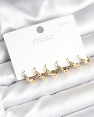 Gold Renk Pirinç Sarmal Model 925 Ayar Gümüş Çivili Kadın Küpe Seti