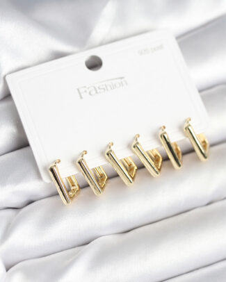 Gold Renk Pirinç Kare Halka Model 925 Ayar Gümüş Çivili Kadın Küpe Seti