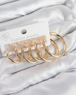 Pirinç Halka Model Gold Renk Kadın Set Küpe