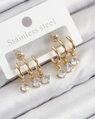 Pirinç Sallantılı Zirkon Taşlı Model Gold Renk Kadın Küpe