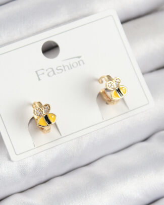 Pirinç Zirkon Taşlı Arı Model Gold Renk Çocuk Küpe