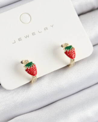 Pirinç Çilek Model Gold Renk Çocuk Küpe