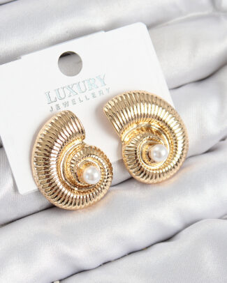 Pirinç İnci Detaylı Girdap Model Gold Renk Kadın Küpe