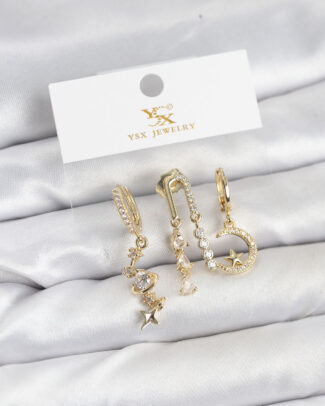 Pirinç Gold Renk Zirkon Taşlı Yıldız Vintage Model YSX Trio Küpe Seti