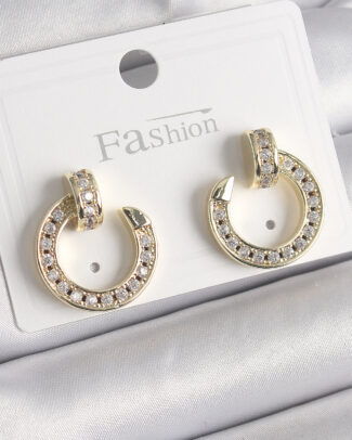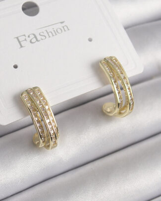 Pirinç Gold Renk Zirkon Taşlı Yarım Halka Model Kadın Küpe