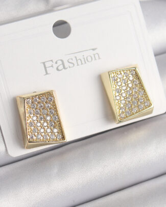 Pirinç Gold Renk Zirkon Taşlı Plaka Model Kadın Küpe