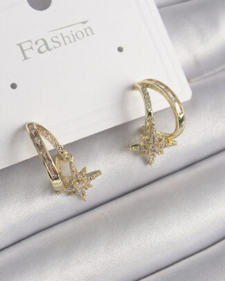 Pirinç Gold Renk Zirkon Taşlı Halka Model Yıldız Detay Kadın Küpe