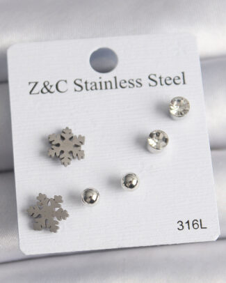 316L Çelik Gümüş Renk Zirkon Taşlı Kar Tanesi Model Kadın Küpe Seti