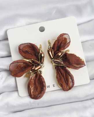 Lotus Model Kahverengi Renk Tüllü Kadın Küpe