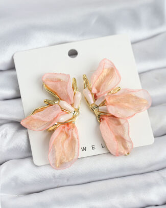 Lotus Model Yavruağızı Renk Tüllü Kadın Küpe
