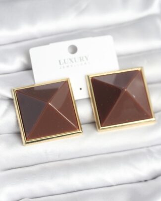 Pirinç Gold Renk Kahverengi Piramit Model Kadın Küpe