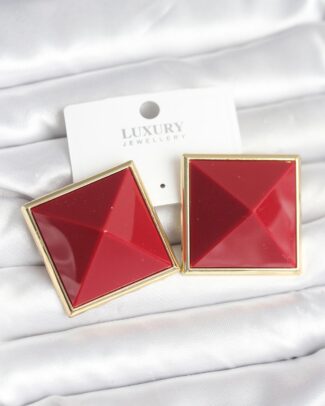 Pirinç Gold Renk Bordo Piramit Model Kadın Küpe