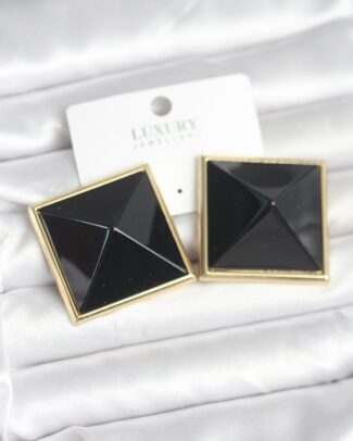 Pirinç Gold Renk Siyah Piramit Model Kadın Küpe