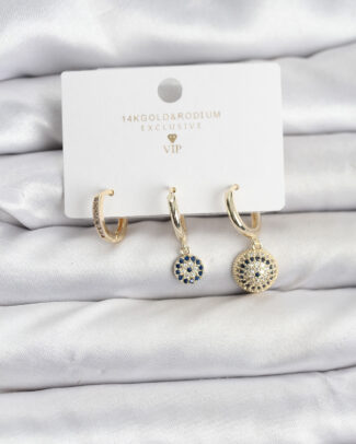 Nazar Model Gold Renk Pirinç 3’lü Kadın Küpe Seti