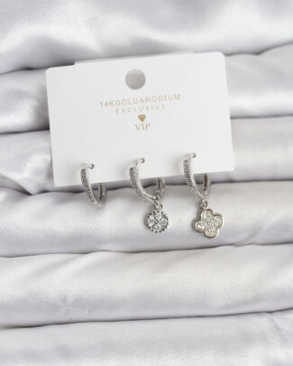 Pirinç Gümüş Renk Yonca Model 3’lü Kadın Küpe Seti
