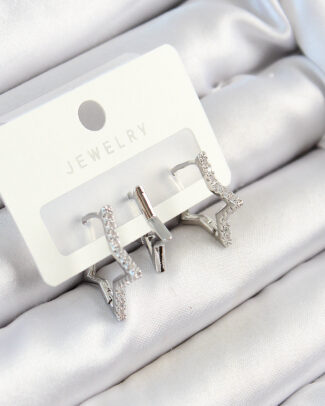 Pirinç Zirkon Taşlı Yıldız Model Gümüş Renk 3’lü Çift Kadın Küpe Set