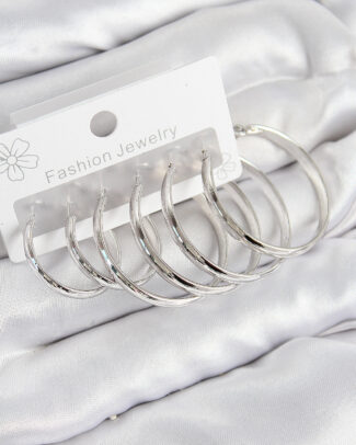 316L Çelik Halka Model Gümüş Renk 3’lü Set Kadın Küpe