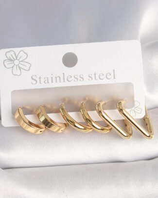 316L Çelik Gold Renk Üçgen Halka Model Kadın Küpe Seti
