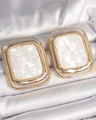 Pirinç Gold Renk Beyaz Mineli Kare Model Kadın Küpe