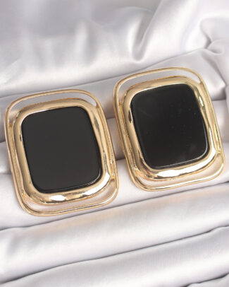 Pirinç Gold Renk Siyah Mineli Kare Model Kadın Küpe