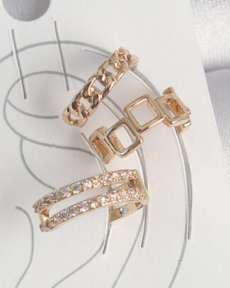 Pirinç Gold Renk Zirkon Taşlı Kare Zincir Model Kadın Kıkırdak Küpe