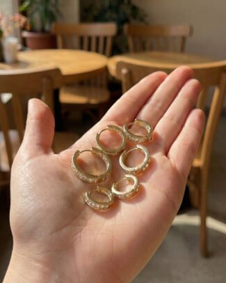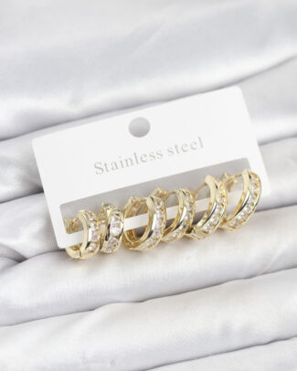 316L Çelik Gold Renk Zirkon Taşlı Halka Küpe Seti