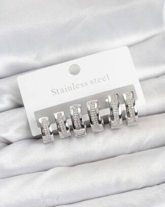 316L Çelik Gümüş Renk Zirkon Taşlı Halka Küpe Seti