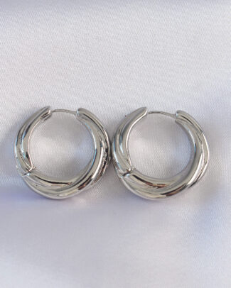 Pirinç Gümüş Renk Asimetrik Kıvrım Küpe