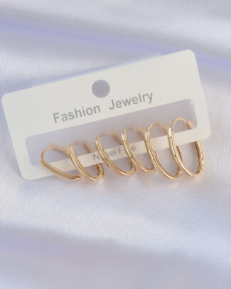 Pirinç Gold Renk İnce Oval Küpe Seti