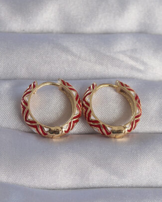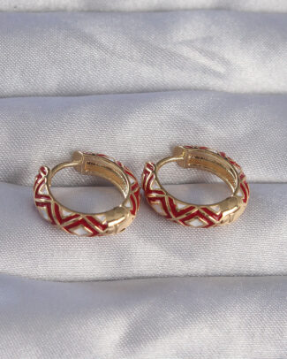 Pirinç Gold Renk Kırmızı Etnik Desenli Halka Küpe