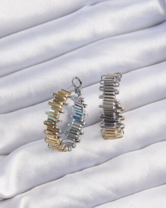 CCB Beyaz Gold Çift Renk Küpe