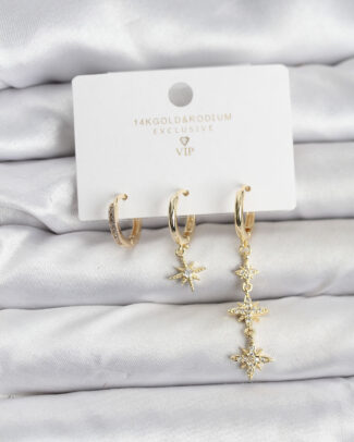 Kutup Yıldızı Model Gold Renk Pirinç 3’lü Kadın Küpe Seti
