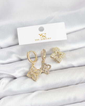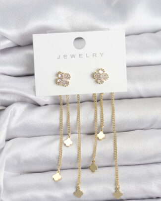 Pirinç Gold Renk Yonca Model YSX Trio Küpe Seti