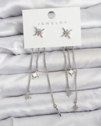 Kutup Yıldızı Model Gümüş Renk Pirinç Sallantılı Kadın Küpe