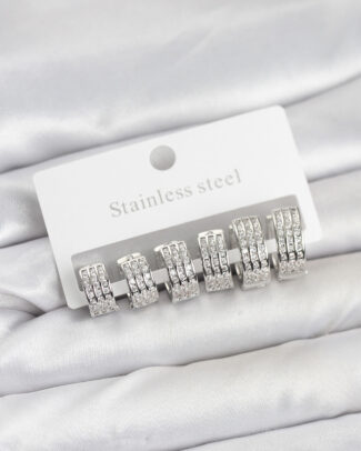 316L Çelik Zirkon Taşlı Gümüş Renk Halka Küpe Seti