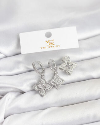 Pirinç Gümüş Renk Yonca Model YSX Trio Küpe Seti