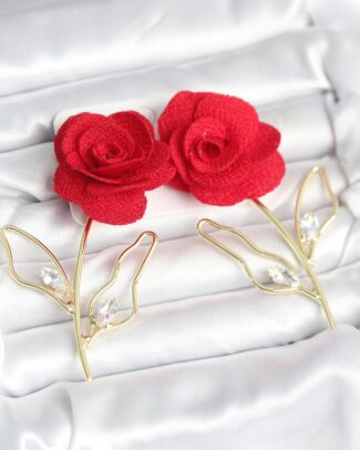 Pirinç Gold Renk Kırmızı Gül Model Kadın Küpe