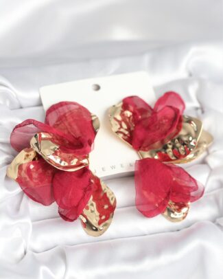 Pirinç Gold Renk Bordo Tüllü Lotus Kadın Küpe
