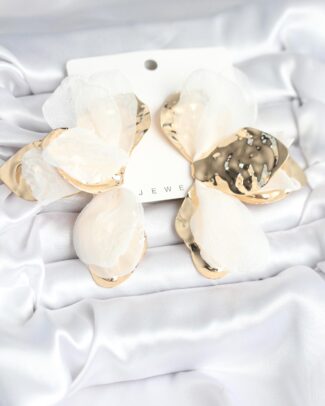 Pirinç Gold Renk Beyaz Tüllü Lotus Kadın Küpe
