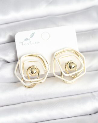 Pirinç Gold Renk Beyaz Mineli Geometrik Gül Model Kadın Küpe