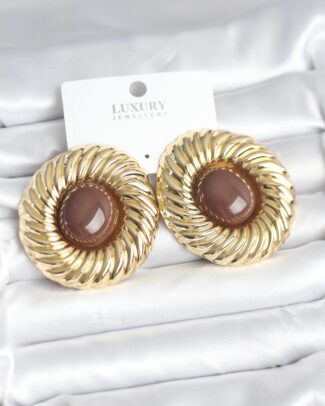 Pirinç Gold Renk Kahverengi Boncuklu Vintage Kadın Küpe