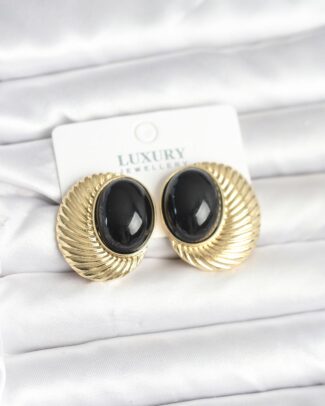 Pirinç Gold Renk Siyah Boncuklu Oval Vintage Kadın Küpe