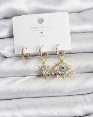 Göz Model Gold Renk Pirinç 3’lü Kadın Küpe Seti