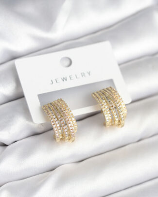 Zirkon Taşlı Şerit Model Gold Renk Pirinç Kadın Küpe