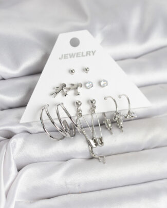 Pirinç Gümüş Renk 6’lı Kadın Küpe Seti