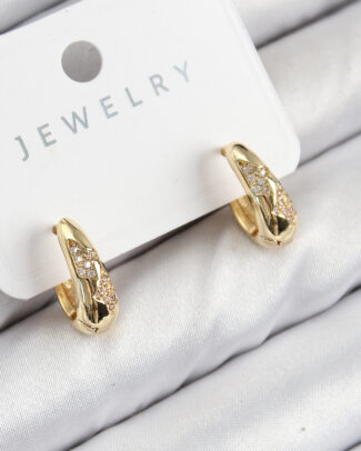 Pirinç Zirkon Taşlı Kıvrımlı Model Gold Renk Kadın Küpe
